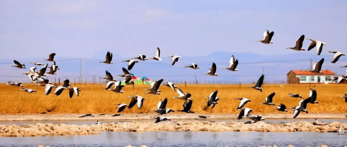 青海湖北岸迎來候鳥遷徙季