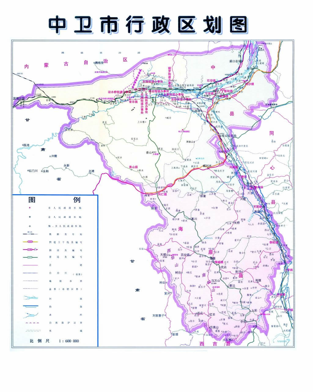 2004年,設(shè)立地級中衛(wèi)市,轄沙坡頭區(qū)(原中衛(wèi)縣)、中寧縣、海原縣。