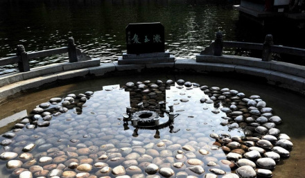 位于百脈泉公園清照園內(nèi),泉池圓形,直徑3米,深0.5米,形若圓盤,泉中池底鋪鵝卵石,泉噴水花色白如玉,噴高可達(dá)數(shù)尺,水落池中如玉石片片,碧水洗白玉,浩純無暇故名白玉泉(漱玉泉),更與墨泉遙相呼應(yīng),一黑一白,一暗一明,共匯繡江。給李清照故里增添了一幅秀麗的畫卷。仰首西望,易安樓琴聲陣陣,海棠軒茗香輕飄,黃花館書畫琳瑯,金石苑古色古香。泉水風(fēng)貌,文化品味融為一體,給清照園增添了耀眼的光彩。