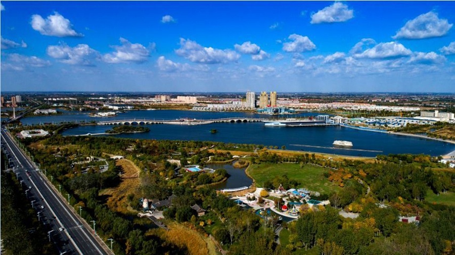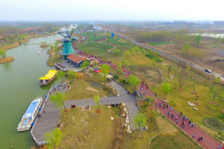 秦皇河濕地公園位于山東省濱州經(jīng)濟(jì)開發(fā)區(qū)東部,北起黃河5路,南至長江11路,全長7.8千米,設(shè)計(jì)寬度226米,規(guī)劃綠地面積85.9公頃,水體面積27.7公頃,總規(guī)劃面積為113.6公頃,分為河畔居城、郊野公園、沙洲濕地三大景觀區(qū)。其中,沙洲濕地景區(qū)位于長江八路至長江十一路段,主要通過濕地的凈化功能,將公園上游黃河水再次沉沙凈化。依托該區(qū)域現(xiàn)狀自然地形、保留原生樹種,形成大量的生態(tài)島景觀。