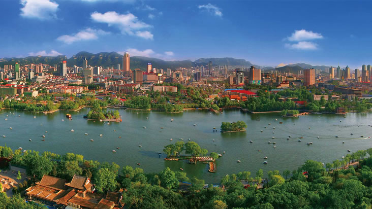 明洪武九年(1376年),濟南成為山東省會。民國十八年(1929年)7月,正式設立濟南市 。濟南市是國家歷史文化名城,因地處古四瀆之一“濟水”(故道為今黃河所據(jù))之南而得名。遠在9000年前的新石器時代早期,已有先民在此繁衍生息。距今4000至4500年前以磨光黑陶為特征的“龍山文化”,系因民國十七年(1928年)首次發(fā)現(xiàn)于濟南東郊龍山鎮(zhèn)而被命名。濟南是中國人民解放軍北部戰(zhàn)區(qū)陸軍機關(guān)駐地、環(huán)渤海經(jīng)濟區(qū)和京滬經(jīng)濟軸上的重要交匯點,華東地區(qū)重要的交通樞紐之一。濟南因境內(nèi)泉水眾多,擁有“七十二名泉”,素有“天下第一泉”和“四面荷花三面柳,一城山色半城湖”的美譽,濟南八景聞名于世,超然樓是明湖新八景之一,是網(wǎng)紅打卡地,是擁有“山、泉、湖、河、城”獨特風貌的旅游城市。