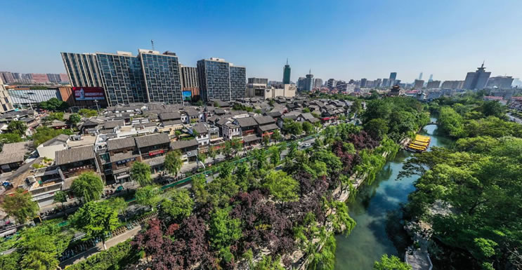 濟南老城的泉水分布最為密集,十大泉群中,僅有老城就占有4個,基本上是現(xiàn)今游船環(huán)城一圈的區(qū)域:從黑虎泉出發(fā),經(jīng)泉城廣場—西門—五龍?zhí)丁竺骱珗@北側(cè)—老東門—青龍橋,密布著大大小小100多處天然甘泉,匯流成的護城河流淌到大明湖,與周圍的千佛山、鵲山、華山等構(gòu)成了獨特的風光,也成為少有的集“山、泉、湖、河、城”于一體的城市,自古就有“家家泉水,戶戶垂柳”、“四面荷花三面柳,一城山色半城湖”的美譽。