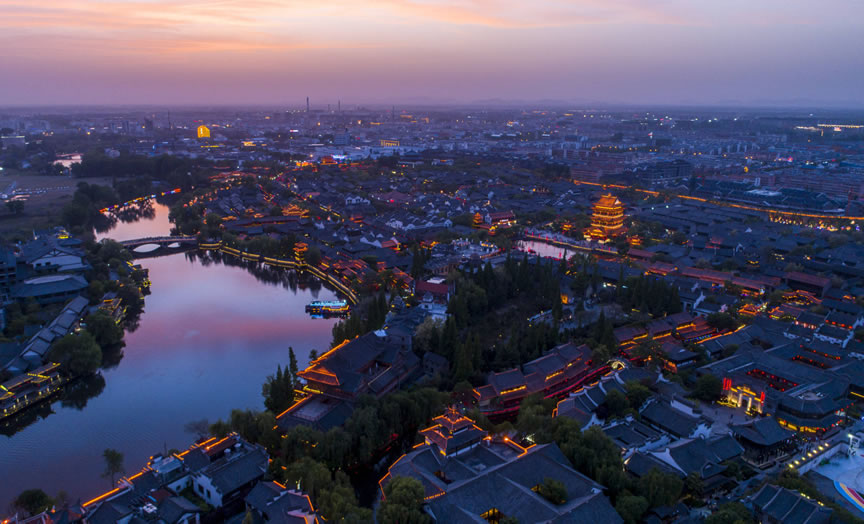 臺(tái)兒莊古城,位于京杭大運(yùn)河的中心點(diǎn),坐落于山東省棗莊市臺(tái)兒莊區(qū)和魯蘇豫皖四省交界地帶。古城肇始于秦漢,發(fā)展于唐宋,繁榮于明清,有“天下第一莊”之稱(清乾隆賜)。