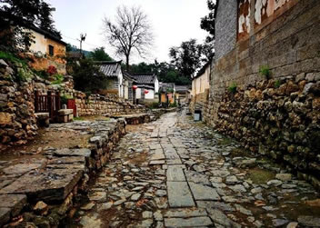從進村的第一道門——禮門開始,便是保留至今的明代始建的古道。山石鋪就的古道中央,嵌有兩溜大塊青石,形似鐵路,村民們形象地稱其為“雙軌”古道!半p軌”不為好看,而有其獨特的用途。早年村里就規(guī)定,走路必須靠右行,兩股道自然也分成了上下行,這與今天的交通規(guī)則不謀而合。古道的盡頭便是連接各家各戶的小徑,為了防滑,斜坡上的道心用的是沙石而不是青石。有趣的是,在村的中央,還有兩座清康熙年間修建的青石拱橋,上下皆可行人走車馬,大雨時,橋下亦可行洪。橋身青石壘砌,不用灰漿,雖有三百余年的歷史,依然堅固如初。有專家說這是現(xiàn)代立交橋的雛形?吹贸鲞@小小的山村從始建之初就經(jīng)過高人指點,充分體現(xiàn)了“天人合一”的人文情懷。