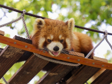 小熊貓展區(qū)設置有供小熊貓攀爬的假樹、假山、繩梯、秋千等設施,更好的展現(xiàn)了小熊貓的日常行為,提高游客的參觀效果。