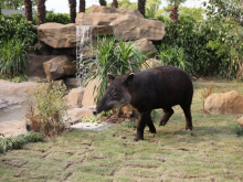 中美貘是生活在中美洲的一種草食動物,它的長相怪異,形體似豬。中美貘棲居于茂密的熱帶雨林中,它們善于游泳和攀登,喜歡在靠近水源、植被豐富的地方生活。中美貘館展區(qū)中配置了假山、瀑布、喬木、灌木、草地等,這種生態(tài)化的展示更加符合中美貘的生活習性。