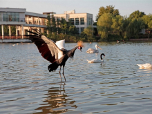 天鵝湖棲息著各類天鵝、鵜鶘等二十余種近千羽水禽和涉禽。早晨和傍晚的天鵝湖最為熱鬧,鳴聲嘹亮是天鵝湖的特色。