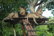 非洲獅區(qū)是車入區(qū)的一部分。非洲獅是現(xiàn)存平均體重最大的貓科動物,雄獅有鬃毛,而雌獅沒有。獅群中,雌獅負責捕獵,雄獅負責巡視領地和與外來雄獅進行戰(zhàn)斗。非洲獅區(qū)行為展示時間為:周一至周五:12:00、13:00、14:00;雙休及節(jié)假日:11:00、12:00、13:00、14:00。