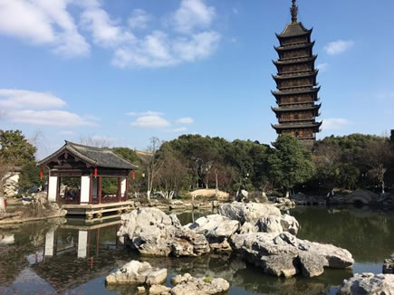 園中在方塔和照壁等主體景物之間不植樹木、花卉,不設(shè)娛樂點(diǎn),“冗繁削盡留清瘦”,突出了文物古跡的地位,顯示了我國(guó)古代民族文化的典雅、樸實(shí)、寧?kù)o和明潔。