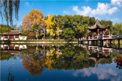 戲鵝池景區(qū)位于古猗園的中心地帶,戲鵝池因池內(nèi)有白鵝成群而得名。西邊建有明代為紀(jì)念"白鶴南翔"而建的“白鶴亭”。