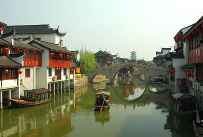 歷史上七寶鎮(zhèn)是個(gè)典型的江南水鄉(xiāng)和重要的農(nóng)村集鎮(zhèn)。鎮(zhèn)中橫亙著自西向東的 蒲匯塘,為太湖水系之一,鎮(zhèn)東有南北向的橫瀝港,北接吳淞江,南接黃浦江。蒲匯塘和橫瀝港相交于鎮(zhèn)中心,境內(nèi)另有支河十余條,當(dāng)年溝通市街的石橋就有27座之多。七寶的鎮(zhèn)市,集中于蒲匯塘南北兩條大街。當(dāng)時(shí)的七寶鎮(zhèn)上,遍布酒館、茶樓、布店、糧行,人氣很旺盛,一直維持著繁榮昌盛的局面。