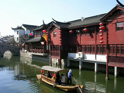 七寶老街改造歷時(shí)兩年多,現(xiàn)已完成一、二期建設(shè)任務(wù)。第一期,修繕蒲匯塘橋和南北一條街,辟建鐘樓和塘橋兩處休閑廣場。第二期,新建蒲匯塘水閣和修復(fù)相應(yīng)的上塘房,重建東西兩座石橋、蒲匯碼頭和七寶校場,恢復(fù)典當(dāng)街,建造張充仁紀(jì)念館等。主事者重視古鎮(zhèn)修復(fù)改造中的文化表現(xiàn),在世人面前展現(xiàn)的是一條保留明清建筑特色的商業(yè)文化街,同時(shí)兼有地方文化內(nèi)涵的歷史老街。作為閔行區(qū)唯一還保存著古樸建筑風(fēng)貌的七寶古鎮(zhèn),現(xiàn)在成了游人們訪舊懷古之勝地。不然,享有盛名的七寶老酒去哪里聞?在以餐飲小吃為主的南大街上,返璞歸真的酒坊還在,七寶老酒的生產(chǎn)全過程一一展示于人。傳統(tǒng)的七寶羊肉,白切、紅燒、熱煲,各種口味應(yīng)有盡有,連外來的“喬家柵”也看中此間古意而入駐老街。