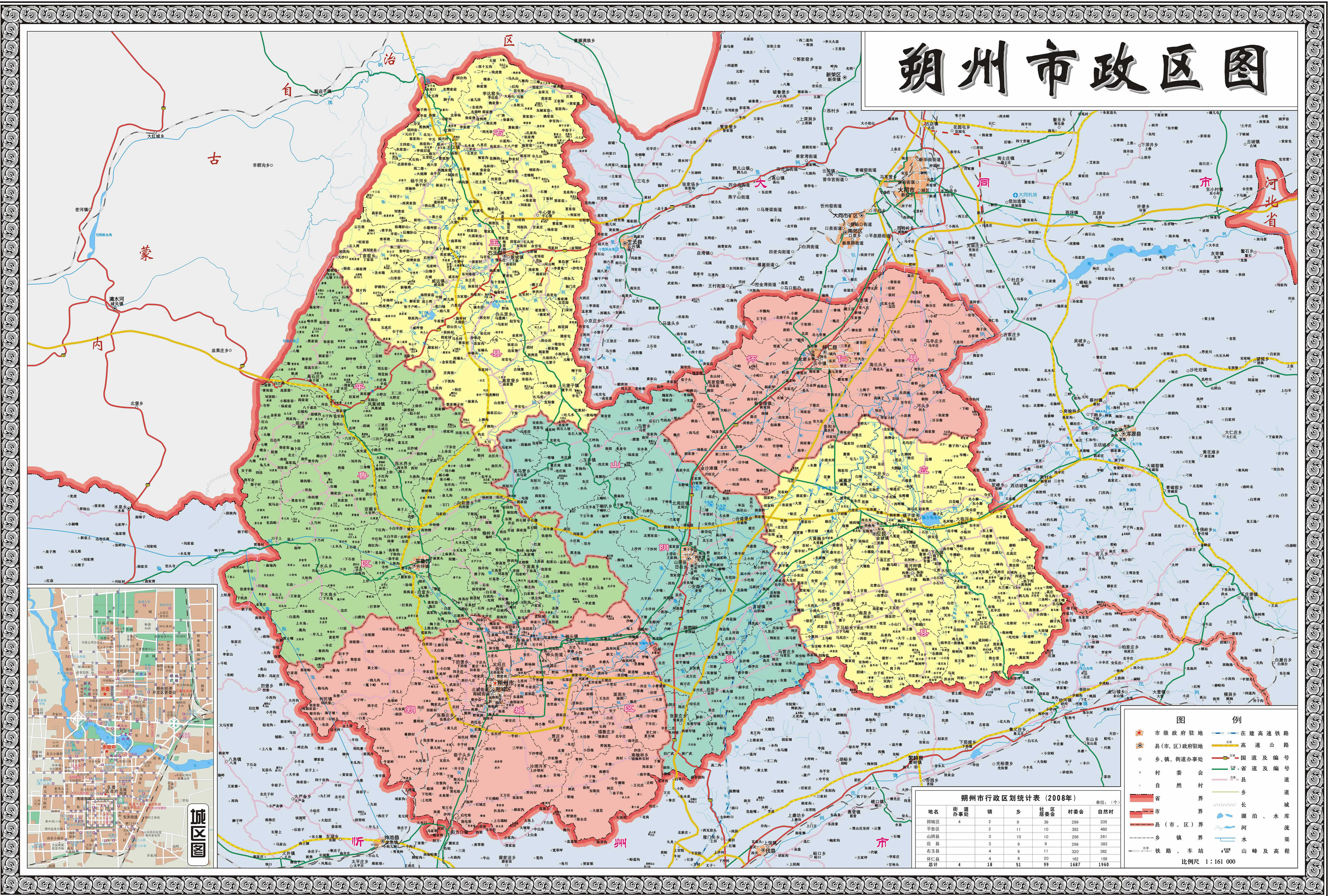 朔州市轄2個(gè)市轄區(qū)、3個(gè)縣,代管1個(gè)縣級(jí)市: