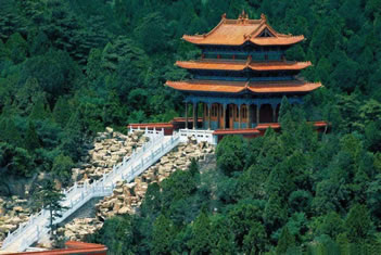 烏金山不僅有豐富的自然景致,而且還有數(shù)不盡的人文景觀。由于烏金山山高林密,氣候宜人,風(fēng)景秀美,靜謐清幽,歷朝歷代多有僧侶入山修行,更有文人墨客、達(dá)官顯貴前來(lái)觀瞻,因此便留下了許多人文遺跡。這里是佛教圣地五臺(tái)山的下院,曾被稱為文殊菩薩講經(jīng)的道場(chǎng),于是便形成了以寺廟群落為主的諸多景觀。許多寺廟群都依山而建,金碧輝煌,氣勢(shì)恢弘。這些寺廟群大都分布在千頃碧綠的林海中。遠(yuǎn)遠(yuǎn)望去,就像茫茫綠海中時(shí)隱時(shí)現(xiàn)的海市蜃樓,顯得縹緲奇幻而又雄偉壯觀。