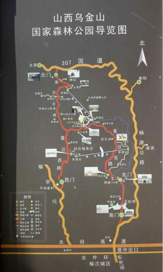 烏金山位于山西省晉中市榆次區(qū)境內(nèi),自古就是避暑勝地。北部與太原市相連,地勢(shì)北高南低,群山疊嶂,奇峰毓秀,海拔1200--1489米,有天然森林三萬(wàn)畝,松柏密集,植被隆厚,白皮松婷婷玉立,側(cè)柏風(fēng)姿卓然,油松蒼勁挺拔,冠蓋奇特?偯娣e5.5萬(wàn)畝,森林面積3.1萬(wàn)畝,森林覆蓋率達(dá)80%以上。境內(nèi)有佛教建筑水晶院、正壽寺、華嚴(yán)寺、和合寺、大佛臺(tái)、西晉王廟遺址,又有道教建筑太清宮、呂洞賓詞碑、玉皇閣、龍王廟、五爺廟、九峰塔以及孔祥熙避暑別墅等景點(diǎn)。