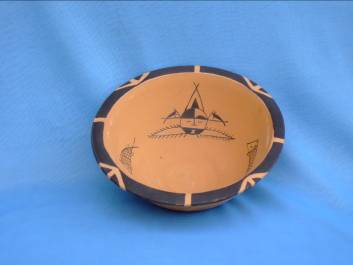 繪畫圖案古樸、簡(jiǎn)練,可分三大類:一類為象生性圖案,如張口作吞食狀的魚、悠閑的鹿、搜索食物的蛙等動(dòng)物紋,還有植物紋。這些象生圖案同史前人類的生活息息相關(guān),形態(tài)生動(dòng)的動(dòng)植物紋樣是農(nóng)耕和漁獵生活的反映。第二類為幾何圖案,有三角形,方格紋、編織紋等,這類圖案多在缽、罐、盆、壺類器皿外璧上部,許多缽類器口緣外側(cè)繪黑色寬帶紋,部分大口淺腹器皿的彩陶?qǐng)D案多繪在內(nèi)壁上,小口器的圖案則繪在口唇和肩腹部,這些部位多是容易看得見的地方,多數(shù)圖案清晰,筆畫疏朗,這些幾何圖案中,三角紋是由魚紋圖案變化而來(lái),波折紋則是山或水的寫意。
