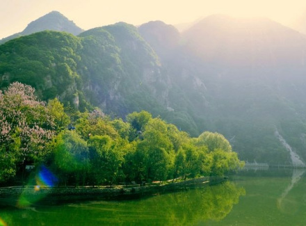 翠華山甘湫池好風光,翠華山以“終南獨秀”和“中國地質(zhì)地貌博物館”著稱而著稱于世。春季的翠華山則更是風景如畫,碧綠的堰塞湖水在群山的環(huán)繞下好像一顆璀璨的明珠鑲嵌在終南山上。矗立在東側(cè)的五彩山就像一扇屏風。