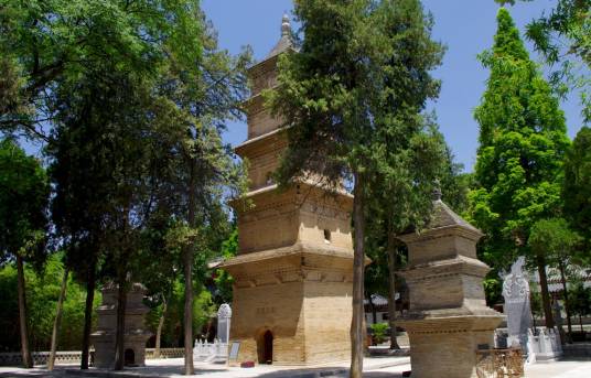 興教寺塔,位于陜西省西安市長(zhǎng)安區(qū)杜曲街道,少陵原畔興教寺內(nèi),是佛教傳播史上著名的人物、唐代高僧玄奘法師及其弟子窺基和新羅弟子圓測(cè)的舍利墓塔。