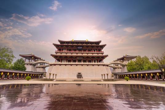 大唐芙蓉園,位于陜西省西安市雁塔區(qū)大雁塔東南側(cè),占地面積1000畝,其中水域面積300畝。大唐芙蓉園是在原唐代芙蓉園遺址以北,仿照唐代皇家園林式樣重新建造的,是中國(guó)第一個(gè)全方位展示盛唐風(fēng)貌的大型皇家園林式文化主題公園。