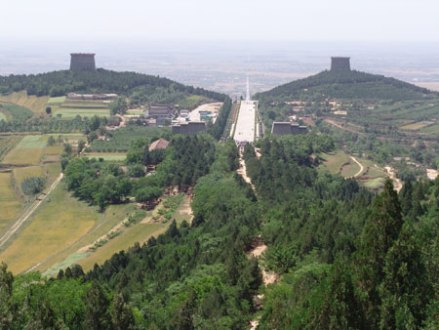 乾陵是第一批全國(guó)重點(diǎn)文物保護(hù)單位,也是盛唐文化的代表性旅游區(qū),位于乾縣城北6千米的梁山上,是中國(guó)唐王朝第三代皇帝高宗李治和中國(guó)歷史上唯一的女皇帝武則天的合葬陵,仿唐長(zhǎng)安城格局構(gòu)筑,分為宮城、皇城和外城三個(gè)部分。內(nèi)城面積約為230萬(wàn)平方米,有南朱雀、北玄武、東青龍、西白虎四門(mén),外城周長(zhǎng)40千米,F(xiàn)存有華表、翼馬、無(wú)字碑、六十一蕃臣石像等精美絕倫的大型石刻100多件。陵園的東南隅分布有17座陪葬墓,出土以唐三彩為代表的珍貴文物4000余件,壁畫(huà)1200多平方米,石雕線刻畫(huà)150平方米,其中永泰公主墓、章懷太子墓和懿德太子墓地宮已對(duì)中外游客開(kāi)放,為國(guó)家4A級(jí)旅游景區(qū)。