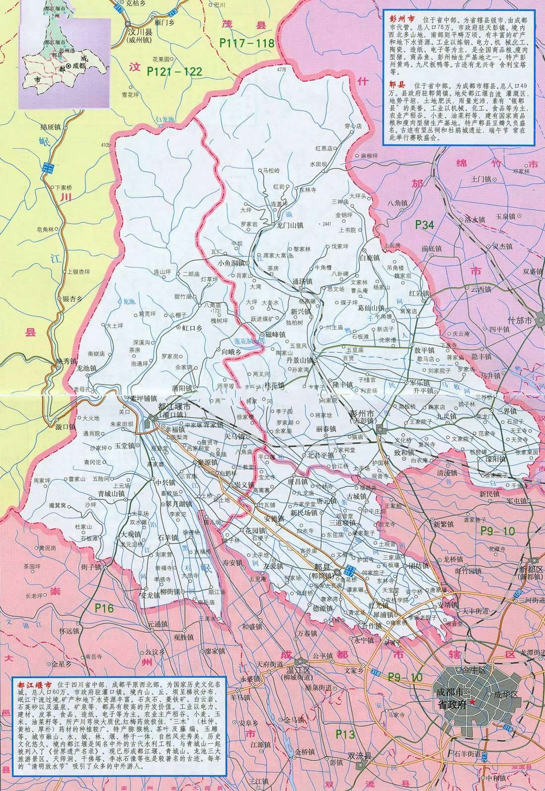 彭州市位于四川省會成都西北部,距成都市區(qū)25公里,人口78萬,面積1420平方公里,是成都市人口第三,面積第二的小康市。彭州是古蜀國建都立業(yè)的核心地區(qū),自秦漢以來,建縣設郡達2000多年,有著悠久的歷史文明,素有“天府金盆”、“蜀漢名區(qū)”之美譽。