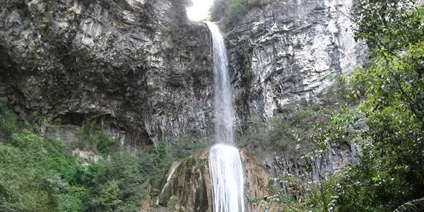 滴 滴水巖,位于固軍鄉(xiāng)火石梁村東南。此地有一小溪為兩山所夾,越往上游山勢(shì)越高,坡度越陡。最終于小溪盡頭處兩山合為絕壁,其頂部成“V”字相交。相交處有一股清泉摔落至下方一堅(jiān)立雞蛋狀的巨石,發(fā)出巨大的聲響。泉水再分為幾綹沿平滑如鏡的石壁滑落至下方深潭!遠(yuǎn)遠(yuǎn)看去,爬滿暗綠青苔的石壁上像是掛著無(wú)數(shù)條白色的絲帶和珠簾!雖景致與沙清河各有千秋,甚至略勝一籌。但因交通較為閉塞,所以知者不多,但來(lái)此觀光過(guò)的游客無(wú)不伸出大拇指一個(gè)勁兒地叫好!