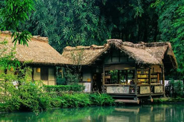 杜甫草堂博物館依據(jù)杜詩(shī)描寫(xiě)和明代格局于1997年恢復(fù)重建了“茅屋景區(qū)”,重現(xiàn)了詩(shī)人故居的田園風(fēng)貌,營(yíng)造出濃厚的詩(shī)意氛圍。