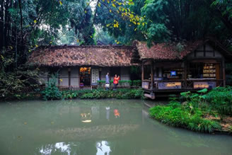 成都杜甫草堂博物館在宋元明清歷代都有修葺擴(kuò)建,已演變成一處集紀(jì)念祠堂格局和詩(shī)人舊居風(fēng)貌為一體,建筑古樸典雅、園林清幽秀麗的著名文化圣地。草堂完整保留著清代嘉慶重建時(shí)的格局,總面積近300畝。園林是非常獨(dú)特的“混合式”中國(guó)古典園林。