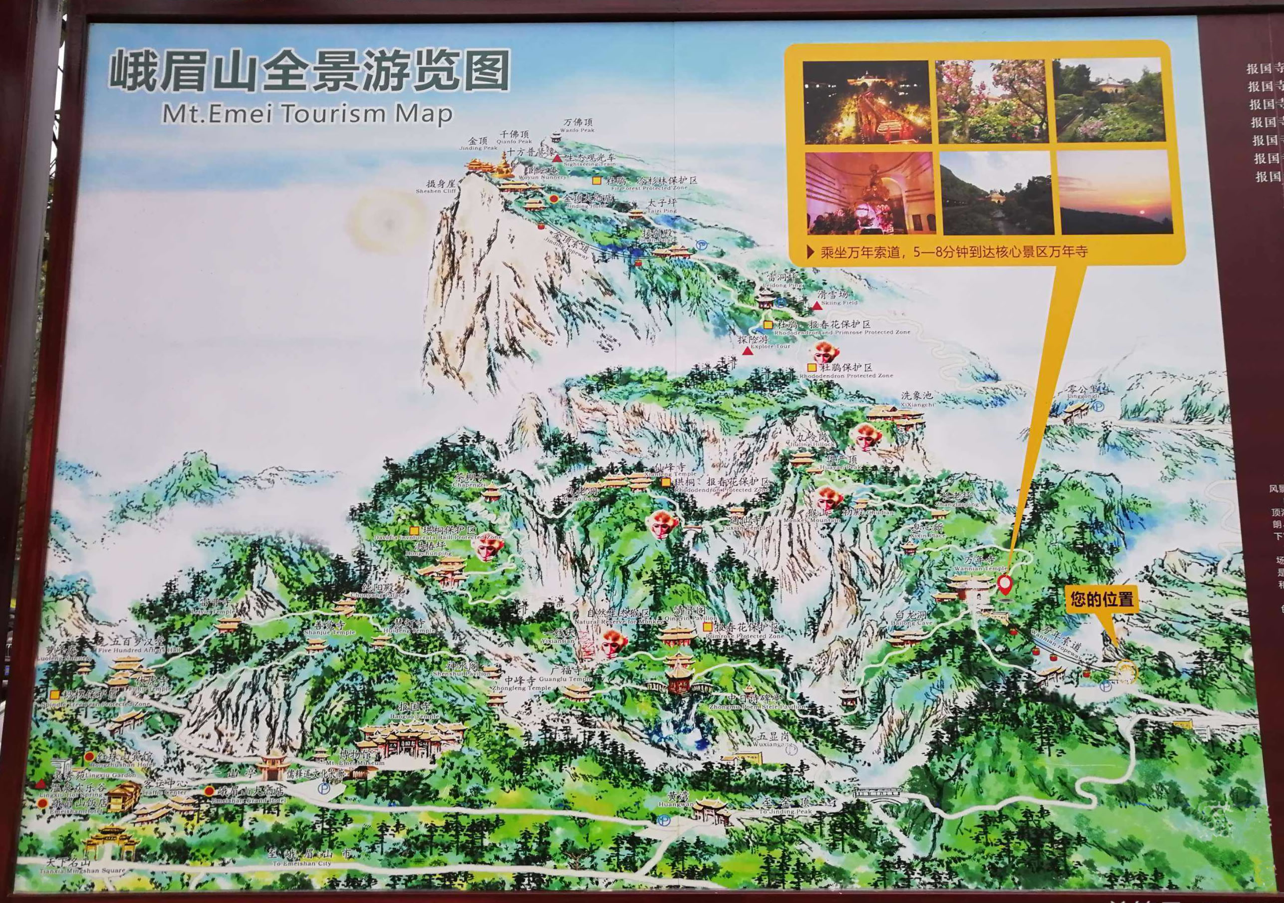 峨眉山原有大小寺院百余處,幾經(jīng)興廢,現(xiàn)存主要寺院有萬(wàn)年寺、報(bào)國(guó)寺、伏虎寺、善覺(jué)寺、光相寺。