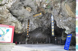 佛爺洞位于李白故里——四川省綿陽江油市城西北十四公里處,是神密的川西北最大的喀斯特溶洞。此處上接匡山(又名戴天山);下連李白讀書臺;東臨觀霧、團嶺;西依瑩華、乾元,它是通往九寨風景區(qū)的必經(jīng)之地。洞四周山環(huán)水繞,古木蒼翠,風光奇絕。民國二十三年,人們在通天清河邊發(fā)現(xiàn)了一蹲三米多高的石刻如來佛像,故此洞名曰佛爺洞。