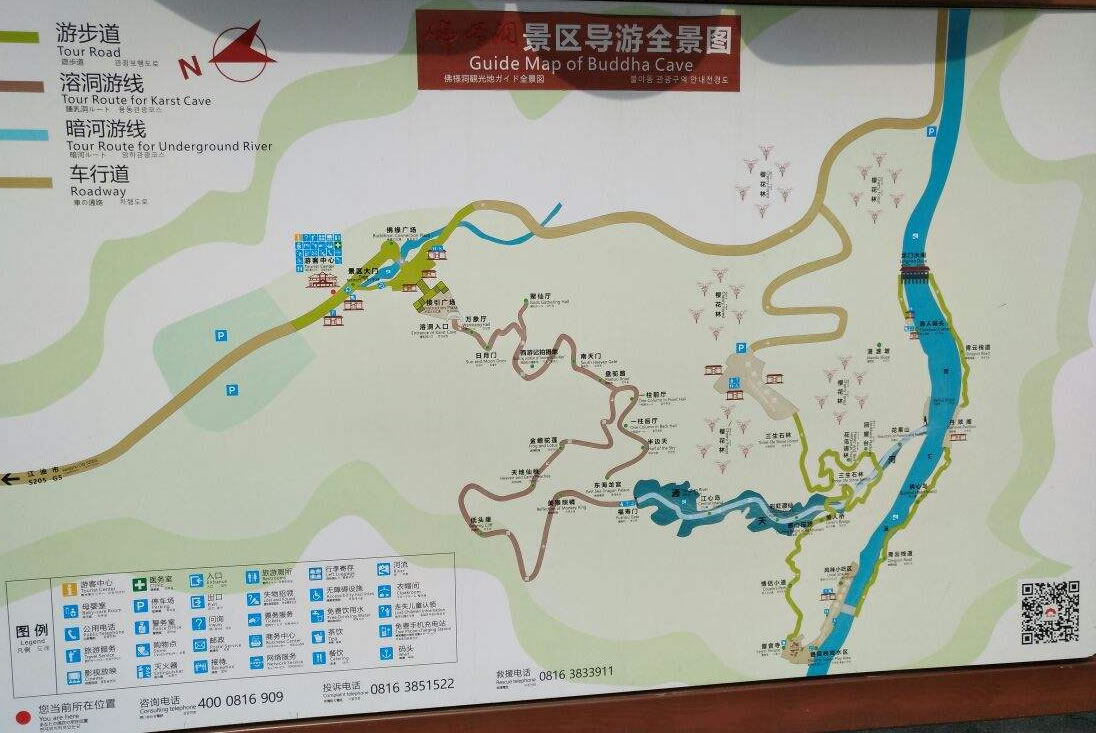 景區(qū)以大型溶洞、地河景觀、清溪深峽、草地森林、石山石海為景觀主調。佛爺洞之美在于山、水之間,在于一路上總會遇見不同風景。景區(qū)采用單行通道,不走回頭路的游覽方式。
