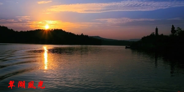 (1)川東西子湖——翠湖 出岳池東門11公里,就到了我市著名的風(fēng)景湖-岳池翠湖,即川北第一風(fēng)景湖。翠湖,原名響水灘水庫,位于城北8公里。1959年開始動工興建,次年8月大壩建成蓄水,蓄水量近170萬立方米。后縣委、縣府充分利用自然條件,1983年將水庫興建為旅游風(fēng)景區(qū),因山清水秀,翠色可人而命名翠湖。"翠湖"二字由著名書法家李半黎書寫。有翠湖八景之說,即:玉帶長堤、平湖嵐光、芳園秋月、溢流飛瀑、銀光倒影、龜山攬勝、龍華夕照、金城煙云。