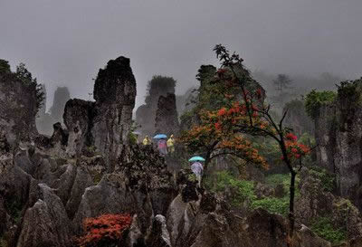 華鎣石林,整景區(qū)面積20平方千米,以蒼翠茂密的山林為環(huán)境基調(diào),以秀麗的喀斯特石林、溶洞為典型的景觀代表,集秀峰怪石、佛教文化、天坑溶洞、茂林修竹、華鎣山游擊隊(duì)遺跡于一體,自然風(fēng)光與人文景觀交相輝映,其景觀特點(diǎn)可集中概括為“峰奇、石怪、山綠、谷幽”,并呈現(xiàn)出“春綠、夏蔭、秋紅、冬白”的四季變化。 旅游區(qū)內(nèi)絢麗的云海、竹海、石林、杉林等自然風(fēng)光更是別具一格、各具特色。登高至1704米的高登峰可觀賞旅游區(qū)春的綠、夏之蔭、秋的紅、冬之銀四季變化,讓人心曠神怡、感慨萬千。華鎣山旅游區(qū)內(nèi)的天池湖則是四川最大的天然構(gòu)造湖泊,在全國(guó)亦屬罕見。華鎣山山雄林茂,動(dòng)植物豐富,主要植物有175科、656種,珍稀植物、名貴藥材300余種;野生動(dòng)物400余種,其中華鎣鷂、云豹、金錢豹、赤狐等國(guó)家保護(hù)動(dòng)物30余種。此外,還有早在宋代就頗具盛名的華鎣峒茶薇菜等土特產(chǎn)品。