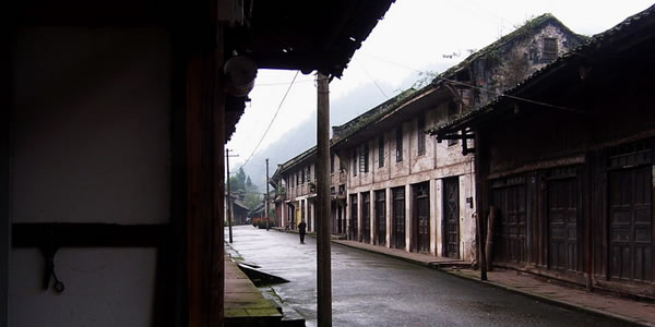 曾家大院 曾家大院位于柳江古鎮(zhèn)北面,通往瓦屋山國家森林公園與玉屏國家森林公園的分道處,建于清朝年間。大院在設(shè)計上花了一番苦心,若從空中俯瞰,其平面圖是一個繁寫的“壽”字。繞墻行走,則有犬牙交錯之感。大院由兩個院落組成,一個大門進(jìn)出,為兩兄弟的共同財產(chǎn),大院有兩塊大的空地,中間是一幢三樓一底中西合璧式的建筑將大院一分為二。 今天的大門處還有一個大石缸,是以前貯水用的。大院內(nèi)共有三個戲樓,方向、形制各異。早已沒有人居住的大院顯得空空蕩蕩,院落里只有幾只老母雞在找蟲吃。環(huán)顧四周,挑檐、樓廊仍然那么精美,整個大院在當(dāng)年算是一方豪宅了。 最為奇特的是,臨河一邊為了追求壽字的形,其圍墻、房屋的結(jié)構(gòu)如同鋸齒狀,凹凸蜿蜒,顯得非常怪異。那些隨之凹凸蜿蜒的欄桿、房間則顯得神秘莫測,但很協(xié)調(diào),這定然出自民間建筑大師之手。 站在二樓的窗前,往南面眺望,只見峨嵋群峰綿延起伏,輕柔的河風(fēng)時不時撩亂你的頭發(fā),幾聲清脆的鳥鳴劃破寂靜的氛圍,讓你的想象再度飛揚。 |