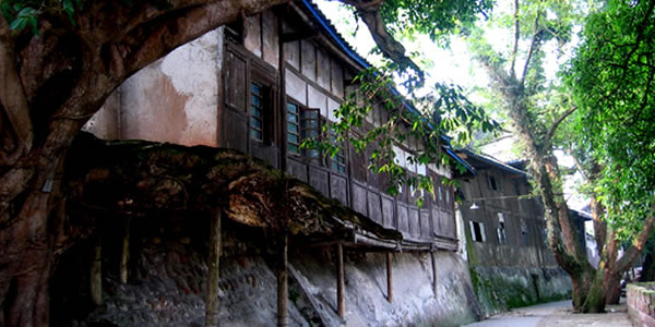 古榕樹下的老街 柳江的老街距曾家大院不過數(shù)十米。穿過狹窄的胡同,一個整潔古樸的小鎮(zhèn)出現(xiàn)了。木門、木窗、青瓦以及瓦上不經(jīng)意長出的幾絲綠色,與鋼筋水泥群碉式的大都市相比,多了幾分詩意。 老街上的住戶很少了。去一個地方,不用多問,就看當(dāng)?shù)厝说难凵癖懵灾蟾。納鞋底的婦女,打川牌的漢子,在家休息的學(xué)子,路上自由奔跑的狗,這就是當(dāng)時小鎮(zhèn)的全部。惟一稍顯嘈雜的聲音便是我們的腳步聲和贊美聲。 順著小鎮(zhèn)往東行走,在遮天蔽日的大榕樹的身影下,到了花溪河邊。遠(yuǎn)山含黛,朦朧中竹影搖曳,順著小鎮(zhèn)往東行走,在遮天蔽日的大榕樹的身影下,到了花溪河邊。遠(yuǎn)山含黛,朦朧中竹影搖曳,炊煙裊裊,山、樹、青瓦木屋,一并倒映在清亮的小河之中。小河上有人為筑成的石路,當(dāng)?shù)厝朔Q之為跳蹬,是連接兩岸的通道,石路的鋪設(shè)阻止了水的流動,涓涓細(xì)流在這里駐足停留,平靜得如同鏡子,成了當(dāng)?shù)厝思忆揭孪床说牡胤,也成了魚蝦談情說愛的平靜港灣。美中不足的是跳蹬上布滿了垃圾,讓不少遠(yuǎn)方來客感到一種失落和遺憾。 文物保護(hù)單位 走累了,坐在美人靠上是一種愜意,木質(zhì)的建筑顯得很有親切感,屋檐下那些透空鏤花的物件無一不透出藝術(shù)的靈氣。眺望河對岸的一字排開的柳江古鎮(zhèn),能覺察到當(dāng)年主人的幾許孤傲之氣。 時光流逝,物是人非。無論曾家大院修建得多么有氣魄,裝修得多么豪華,在今天都讓人感到莫名的寂寥。偌大的院落鮮有人跡,有時大門緊閉,只能在外面偷偷打望一番。這座豪宅在解放后曾作為鎮(zhèn)政府的辦公樓,為了保護(hù)古跡,鎮(zhèn)政府又遷了出來,至今樓上樓下仍散落著許多已經(jīng)無用的日歷、辦公桌等,不知是誰還在二樓的屋檐下養(yǎng)了幾只鴿子,它們與雞成了這里的居民。 這個美其名曰的文物保護(hù)單位,到處是灰塵和垃圾,沒有人管理。游客為曾家大院的建筑所折服,然后又在那種殘敗中遺憾而去。保存這樣完好,又極具特色的清代建筑是不多見的,這樣的保護(hù)顯然沒有實質(zhì)作用,沒準(zhǔn)哪天某位游客不小心留下的煙頭會將它付之一炬,成為永遠(yuǎn)的痛。