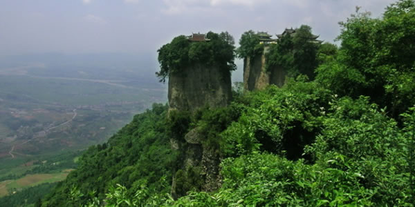 竇圌山:又名圌山,位于四川江油城北20公里的涪江東岸。又名圌山。相傳唐代彰明(今屬江油縣)主簿竇圌(字子明)隱居于此,故名。自麓至頂約5公里許,行道迂回盤旋,林木蒼翠,景色秀麗。 李白少年時曾游此山,題下千古絕句“樵夫與耕者,出入畫屏中”,后國民黨元老于右任手書鐫刻于山中石碑之上。