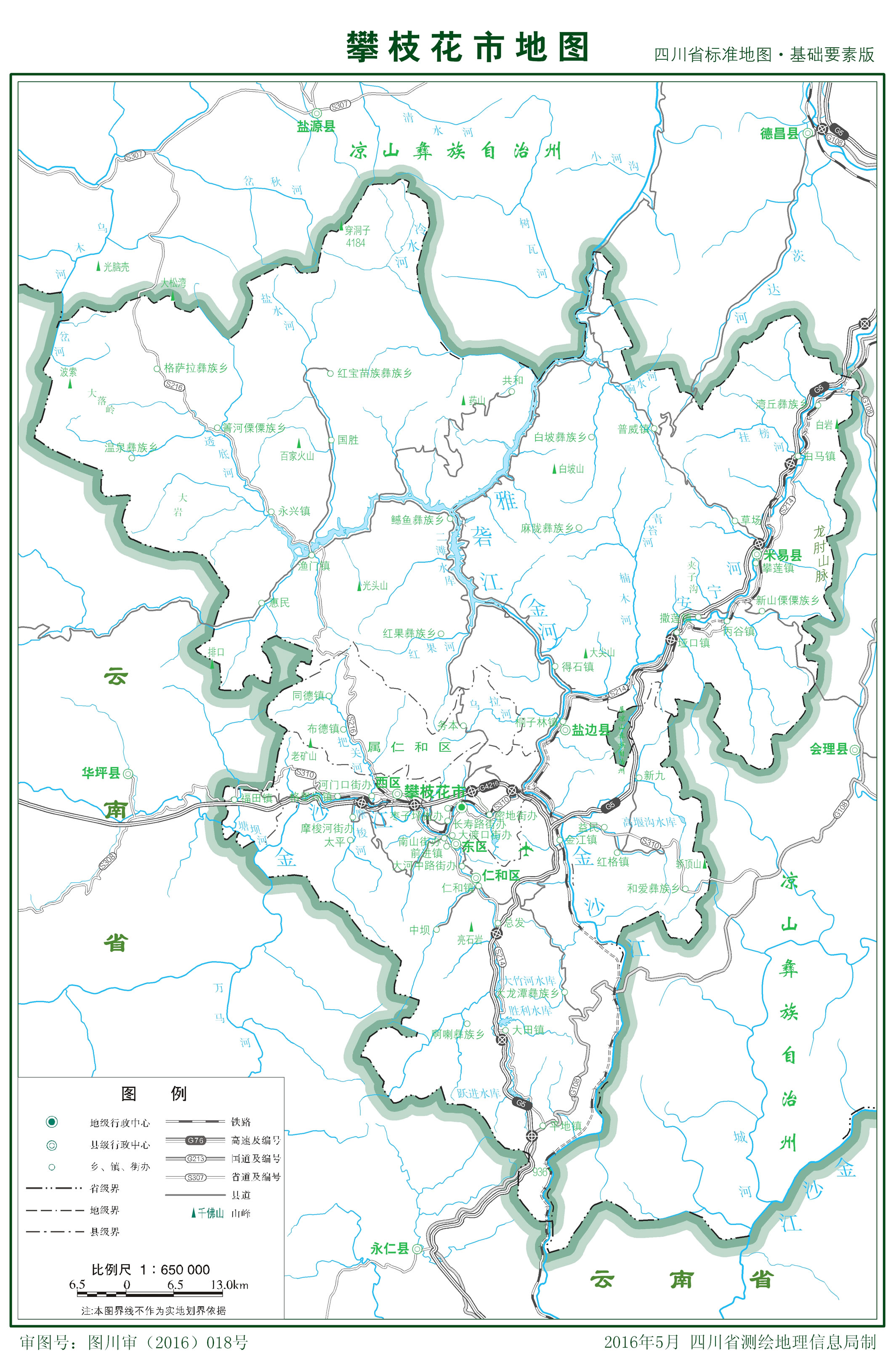 攀枝花市轄3個市轄區(qū)、2個縣:
