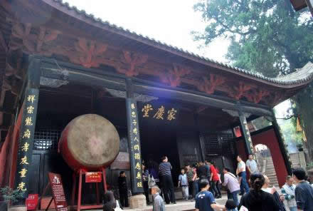時(shí)雨亭旁的這座高臺建筑叫家慶堂。建于明代,叫啟元殿,清代培修之后更名為家慶堂。所謂“家慶堂”是指文昌帝君張亞子舉家歡聚之地。早在北宋初期,宋太祖趙匡胤就對張亞子一家8位主要成員加封圣號;南宋初年宋高宗趙構(gòu)追封4位;又過了二十多年,南宋咸淳五年(1269年)再一次對張亞子的公主和女婿封了圣號,使加封的家庭成員達(dá)到14位。