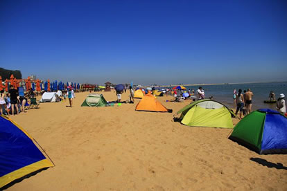 東疆港人工沙灘(東疆灣金沙灘)—天津?yàn)I海新區(qū)首個(gè)人工海灘已經(jīng)建成,藍(lán)色的海水,金色的沙灘,或坐在松軟沙灘上吹海風(fēng),或光著腳丫在鵝卵石帶上散步,撿貝殼、吃燒烤、玩沙灘排球……您用不著走出天津,就能享受“碧海金沙”帶來的樂趣。東疆港人工沙灘所處的位置是天津海岸線最靠近外海,也是水質(zhì)最好的地方。東疆港人工沙灘的“金沙”平均厚度達(dá)1.2米,從岸邊呈緩坡狀一直延伸至海邊。人工沙灘所用的“金沙”全部從福建運(yùn)來,用量近20萬噸。沙灘的緩坡設(shè)計(jì)充分考慮到潮水漲落時(shí)的水流情況,可防止海水退潮時(shí)將“金沙”帶走。為保證游人安全,在公共游樂區(qū)沙灘的近海端鋪設(shè)了一條寬約58米的鵝卵石帶,所用鵝卵石將從秦皇島運(yùn)來。此外,天津港還在附近海域修建防波堤,以保持海灘的潔凈,防止海上漂浮物進(jìn)入人工海灘。