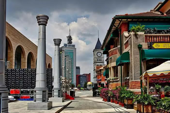 意式風情區(qū)以馬可?波羅廣場為中心,即民族路和自由道交會處,涵蓋哥特、羅馬、巴洛克等建筑特色,具有珍貴的歷史、文化、藝術(shù)價值。廣場周圍建筑錯落有致,雕飾精美,構(gòu)成了風格典雅的建筑群。和平女神雕塑位于廣場中心,為意大利人設計和建造。