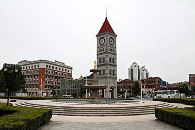 位于天津站前廣場河北區(qū)海河東路,為迎接新世紀建造,2000年底落成。鐘高40米,通體金屬,重170噸;鐘盤直徑14.6米,面積154平方米;分針長4米,時針、分針共重180公斤;鐘擺上下,恰似日月同輝;鈡盤圓周的12個直徑2.6米的銅鑄浮雕分別表示12星座。古典與現(xiàn)代渾然一體,東西方相互交融,寓意時空無限,時不我待。該鐘十萬年的走時誤差僅為1秒。