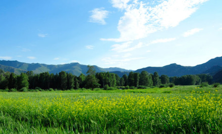 百花草場(chǎng)位于新疆富蘊(yùn)縣可可托海風(fēng)景區(qū)額爾齊斯大峽谷,清澈的額河水從它的西側(cè)流過(guò)。有滿天星、野油菜花、映山紅、野菊花、刺薔薇等花草。