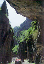 天池石門:景名為“石門一線”,海拔1500米,位于大天池以北5.9公里處,為一段被三工河古河道切割形成的石峽谷,這道山口是進入風景區(qū)的天然門戶;峽谷長約百余米,最窄處僅十來米寬,兩側直立的巖壁高逾數(shù)十米,形勢峻險,仰視見一線天,側邊盤繞三工河水。