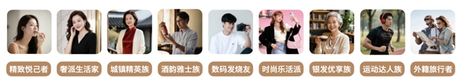 6.消費人群重構(gòu),從“規(guī)模擴張”到“圈層精耕”。 根據(jù)消費貢獻、品類偏好、年齡、地域等維度,中免集團核心客群可劃分為九個類別,他們精準(zhǔn)覆蓋多元消費需求:31-45 歲一二線 “精致悅己者” 主打高端護膚,高凈值 “奢派生活家” 偏愛腕表珠寶,三四線 “城鎮(zhèn)精英” 務(wù)實追品質(zhì),31-50 歲男性 “酒韻雅士” 熱衷高端酒飲,21-35 歲 “數(shù)碼發(fā)燒友” 聚焦科技產(chǎn)品,16-30 歲 Z 世代 “時尚樂活派” 追彩妝潮流,60+“銀發(fā)優(yōu)享族” 重健康消費,26-45 歲 “運動達人” 選專業(yè)裝備,外籍旅行者青睞中國特色商品。各類人群消費偏好鮮明,為消費升級與圈層精耕注入活力。