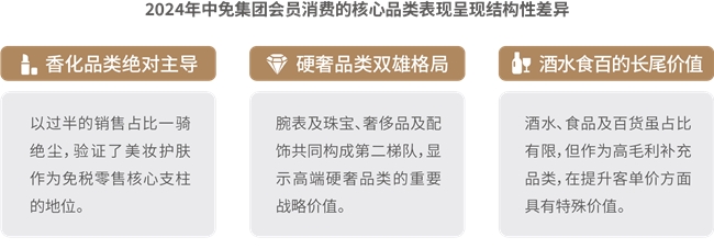 8.消費呈現(xiàn)“美妝霸榜”、“硬奢守局”、“酒水突圍”新格局。香化方面,彩妝香水增長亮眼,外籍旅客、男性客群、國潮品牌成為重要增長點,中免通過“線下定制護膚方案+線上精準(zhǔn)推送”提升復(fù)購;奢侈品及配飾方面,消費結(jié)構(gòu)多元化,超高端市場增長顯著,輕奢區(qū)間保持穩(wěn)定需求,中免以“私人導(dǎo)購+機票報銷”等尊享服務(wù)鎖定高端客群;腕表及珠寶方面,品類分化顯著,首飾品類同比增長,腕表需求區(qū)域性特征突出;酒水方面,市場擴容升級,品類及人群消費分層顯著,渠道互補發(fā)展,呈現(xiàn)出規(guī)模擴張與結(jié)構(gòu)升級并行的顯著特征;食品及百貨方面,市場穩(wěn)健擴容,圈層特征鮮明,Z世代和銀發(fā)人群引發(fā)情感和健康消費變革,中免針對性布局“國潮品牌+細分場景”,精準(zhǔn)匹配圈層需求。中免集團已形成包含精品、香化、煙酒等全品類、超36萬SKU的商品矩陣,并在2024年成功引入200多個新品牌,獨家發(fā)售19個系列500余款全球限量商品,商品競爭力持續(xù)增強。