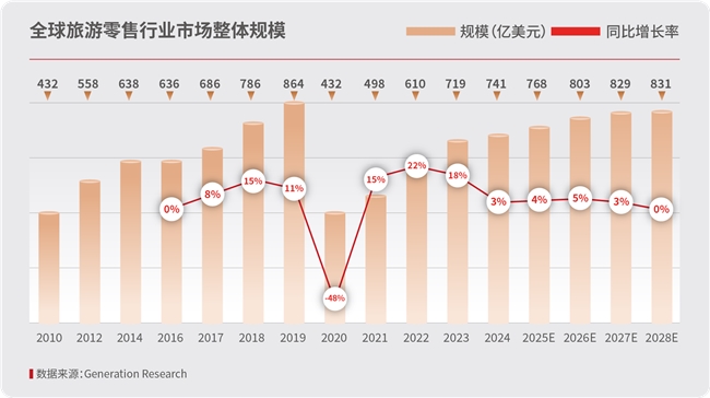 1.全球市場保持復(fù)蘇勢頭。2024年,全球免稅及旅游零售市場規(guī)模為741.3億美元,同比增長3%,恢復(fù)至2019年的85.8%,這一回升態(tài)勢,得益于國際旅游復(fù)蘇、政策支持與市場開放、新興市場崛起及數(shù)字化轉(zhuǎn)型多重合力,行業(yè)活力持續(xù)釋放。