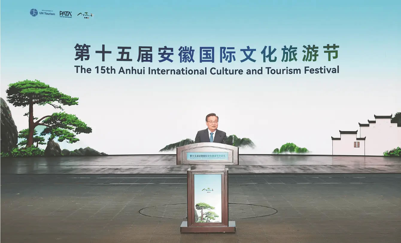 梁言順首先代表省委、省政府向各位嘉賓表示歡迎和感謝。他說,安徽山清水秀、歷史悠久,文化底蘊(yùn)深厚,每一寸土地、每一片山水,都展現(xiàn)出迷人的風(fēng)光、蘊(yùn)藏著動(dòng)人的故事,山水之韻同人文之勝相得益彰、交相輝映。近年來,我們?nèi)媛鋵?shí)“發(fā)展全域旅游,把文化旅游業(yè)打造成為支柱產(chǎn)業(yè)”的重要指示,堅(jiān)持以文塑旅、以旅彰文,持續(xù)做好“百業(yè)+文旅”“文旅+百業(yè)”大文章,“美好安徽 迎客天下”的金字招牌擦得更亮。當(dāng)前,安徽正處在夯實(shí)基礎(chǔ)、全面發(fā)力、創(chuàng)先爭優(yōu)、跨越趕超的關(guān)鍵時(shí)期。我們將深入學(xué)習(xí)貫徹黨的二十屆四中全會(huì)精神,持續(xù)完善政策保障體系,推動(dòng)文化和旅游業(yè)態(tài)融合、產(chǎn)品融合、市場融合,豐富高品質(zhì)文旅產(chǎn)品供給,打造更多文旅精品,讓海內(nèi)外游客在“詩和遠(yuǎn)方”的雙向奔赴中續(xù)寫新的故事。