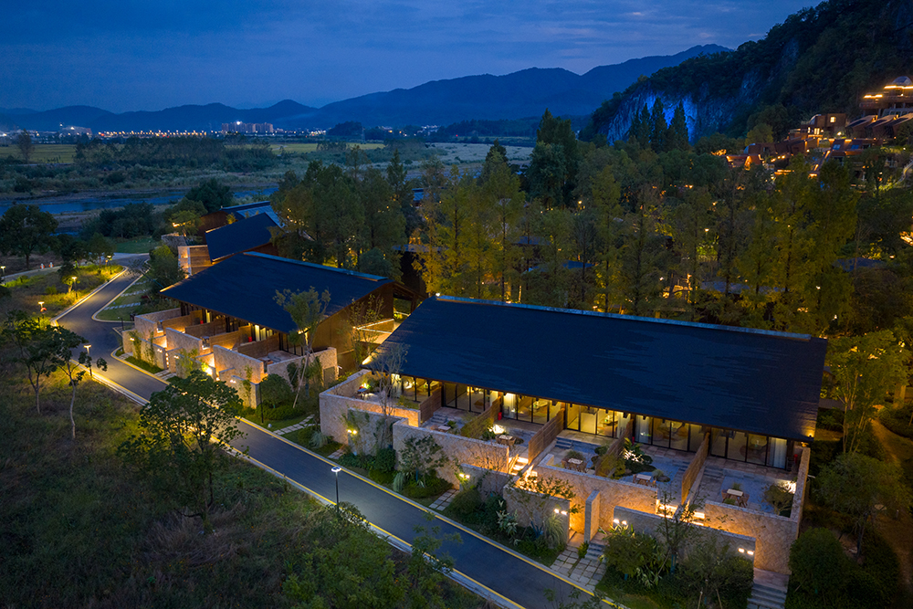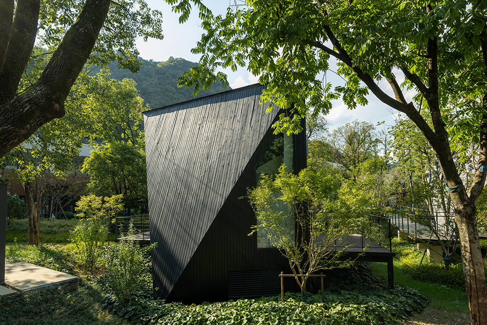 架空設(shè)計(jì)的海螺屋客房隱于林間,如同童話故事中的精靈居所,為住客營(yíng)造出私密而夢(mèng)幻的休憩空間;天文臺(tái)客房懸于巖壁之上,通過客廳的望遠(yuǎn)鏡和全景天窗可賞星河美景,將浩瀚星空引入室內(nèi);炭晶舍客房以傳統(tǒng)炭雕藝術(shù)為靈感,通體的炭黑色藝術(shù)感十足,展現(xiàn)出材料與自然的深度對(duì)話;復(fù)式結(jié)構(gòu)的玉江舍客房,則讓賓客在空間轉(zhuǎn)換中,收獲山川、江潮等不同的觀景視野,實(shí)現(xiàn)移步換景的居住意境。
