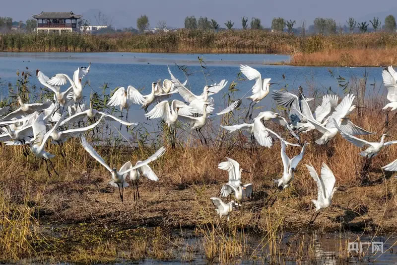 近年來,廬江縣通過實(shí)施退漁還湖等一系列生態(tài)修復(fù)工程,顯著提升了黃陂湖濕地的水質(zhì)和生態(tài)功能,為候鳥提供了豐富的食物來源和安全的棲息環(huán)境。盡量減少人為干擾,確保這群遠(yuǎn)道而來的‘貴客’能夠安然過冬。除了白琵鷺,前來越冬的還有灰雁、鴛鴦等大量候鳥,黃陂湖濕地正日益成為候鳥遷徙路線上一個(gè)重要的“中轉(zhuǎn)站”和“加油站”。