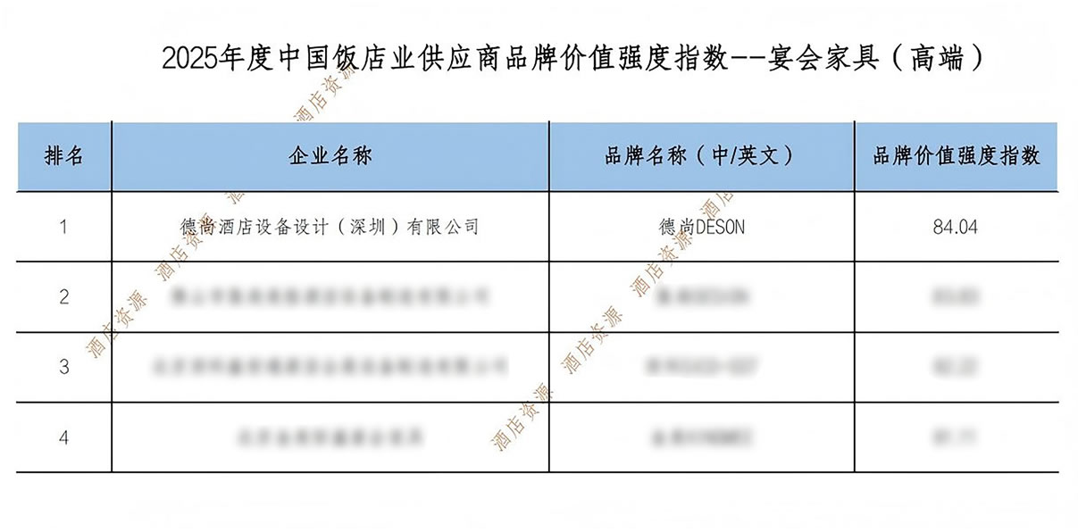 《2025年度中國飯店業(yè)供應(yīng)鏈品牌價值強度報告》由全聯(lián)旅游業(yè)商會住宿業(yè)分會聯(lián)合多家權(quán)威機構(gòu)共同編制,已成為酒店采購決策的重要參考依據(jù)。DESON德尚能夠?qū)崿F(xiàn)行業(yè)榜首的蟬聯(lián),關(guān)鍵在于其核心業(yè)務(wù)方向與酒店業(yè)發(fā)展訴求形成深度契合。